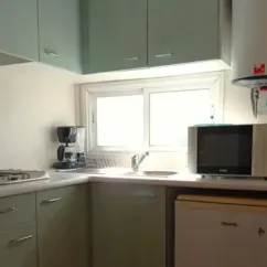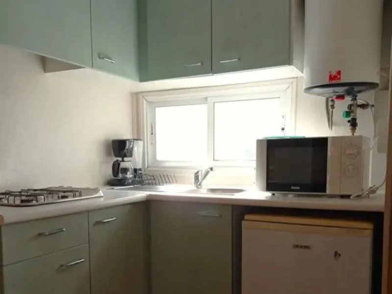 - Plaques cuisson, micro-ondes, réfrigérateur, cafetière, vaisselle et ustensiles de cuisines inclus
