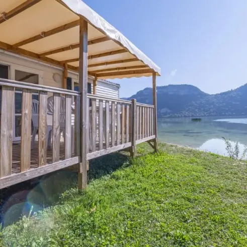 Location Mobil Home Confort 2 Chambres - 4 Personnes - Vue Lac au camping Bel Air Village Sous le Moulin, Jura 39