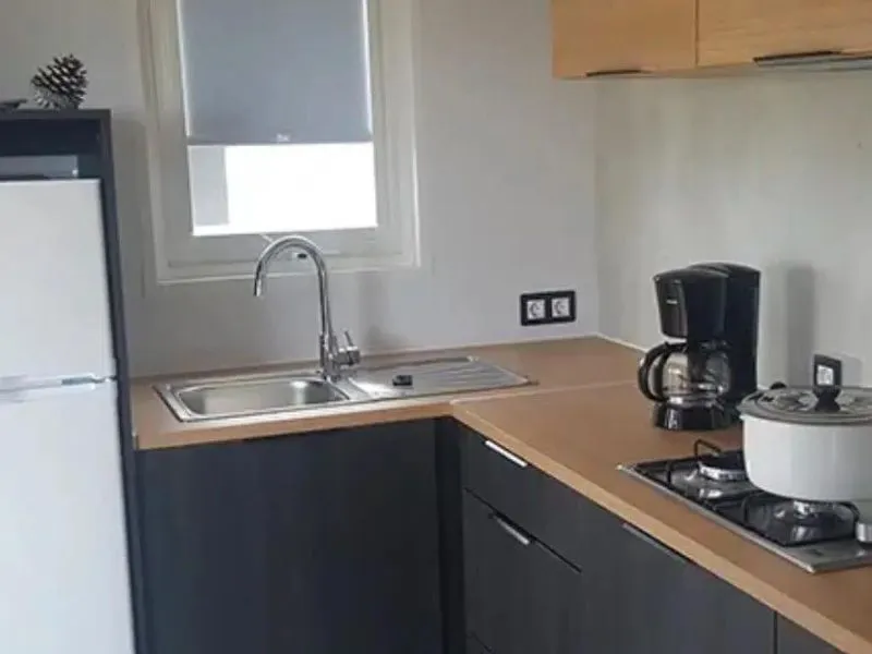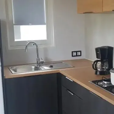 - Plaques cuisson, micro-ondes, réfrigérateur/congélateur, cafetière, vaisselle et ustensiles de cuisines inclus