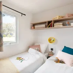 - Enfants : 2 x 2 Lits simples, oreillers et couvertures fournis