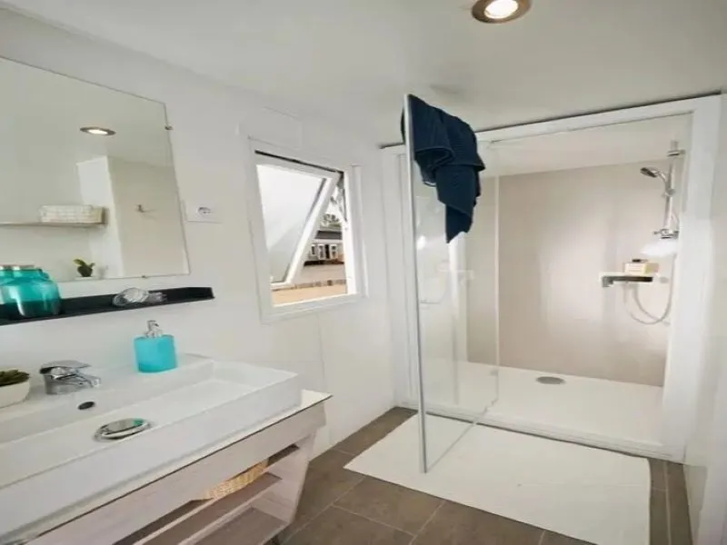 - Salle d'eau avec lavabo, douche et WC séparés, chauffage