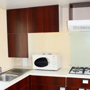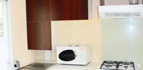 - Gazinière 4 feux, hôte, évier, frigo, cafetière électrique, micro-ondes, vaisselle et matériel cuisson