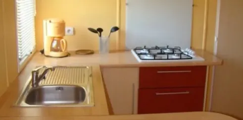 - Cafetière électrique, cuisine équipée, évier, micro-ondes, plaque de cuisson 4 feux gaz, réfrigérateur