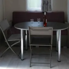- Banquette au salon avec 1 lit convertible intégré (130 x 190cm), table et chaises, télévision, chauffage électrique