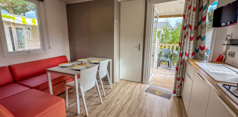 Location Mobil Home Aqua 2 Chambres 4/5 Personnes - Terrasse Semi-couverte - TV au camping L'Albizia, Vendée 85