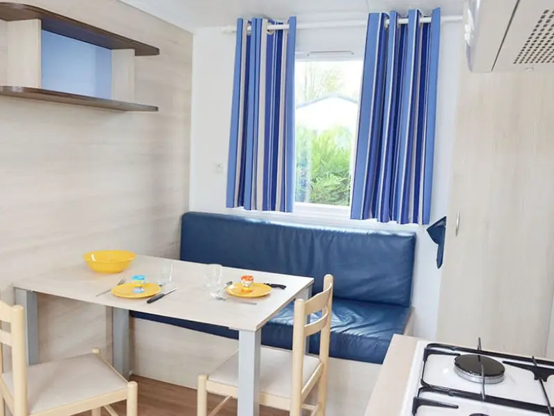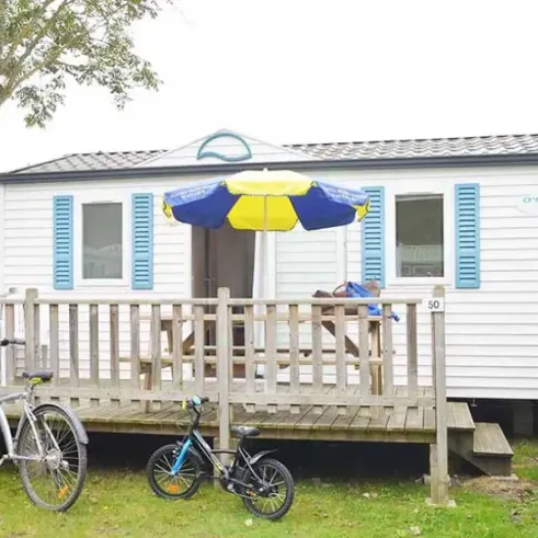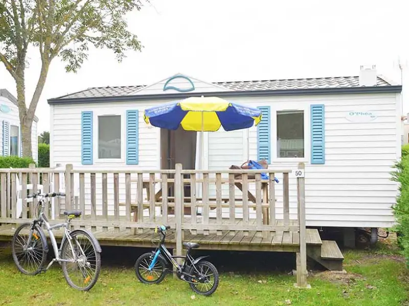 Location Mobil Home Aqua 2 Chambres - 4 Personnes - Terrasse semi-couverte au camping Domaine des Guifettes, Vendée 85