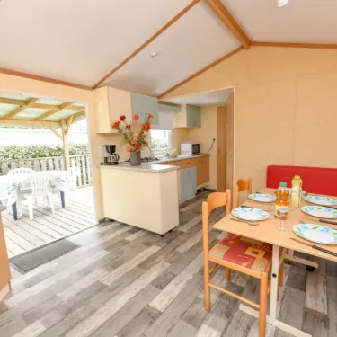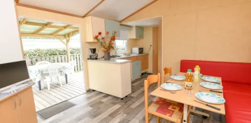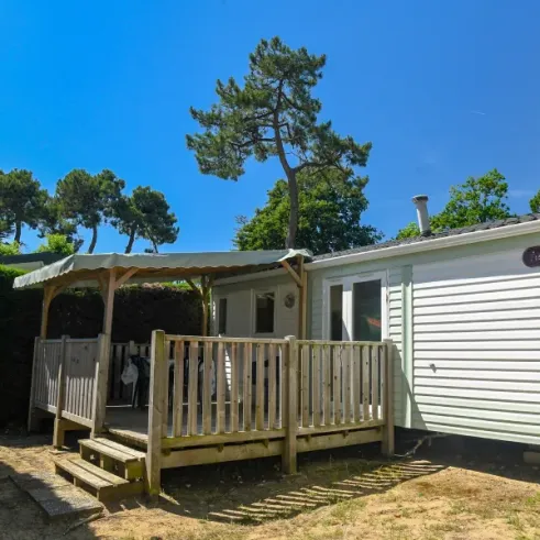Location Mobil Home Aqua 2 Chambres 4/6 Personnes Terrasse Semi-Couverte au camping Paradis La Pomme de Pin, Vendée 85