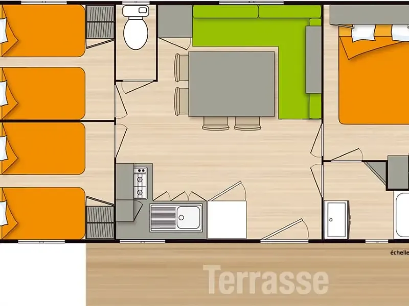 Location Mobil Home Aqua 3 Chambres - 6/8 Personnes - Terrasse semi-couverte au camping Moncalm, Vendée 85