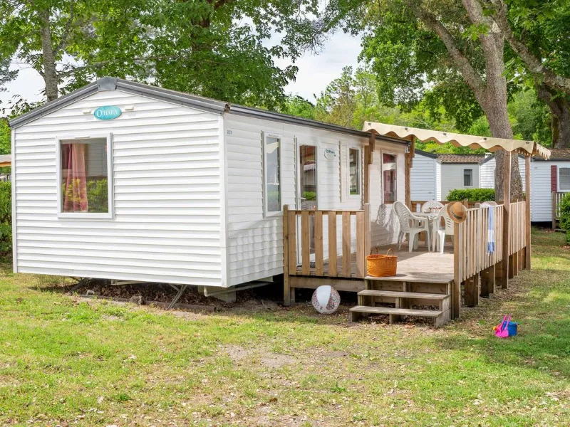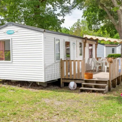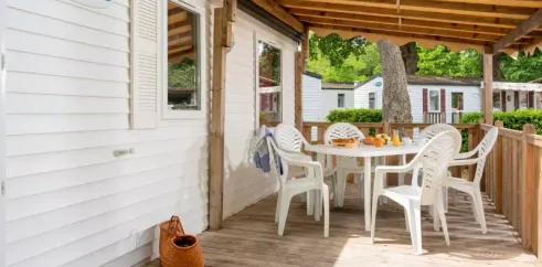 Location Mobil Home Aqua 3 Chambres 6 Personnes Terrasse semi-couverte au camping Le Soleil des Landes, Landes 40