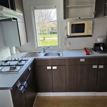 - Plaques de cuisson gaz, micro-ondes, réfrigérateur, cafetière électrique, grille-pain, bouilloire