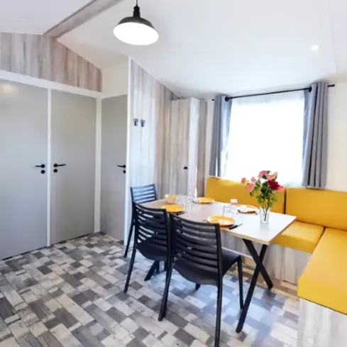 - Séjour avec table, chaises avec une banquette lit pour 2 couchages. Télévision. Climatisation