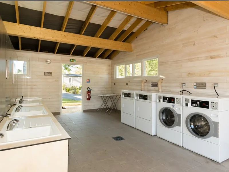 - Laverie : machines à laver et sèches-linge, tables de repassage