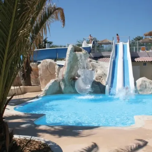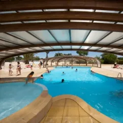 Pour agrémenter votre séjour, vous pourrez profiter d'un espace aquatique doté d’une piscine couverte et chauffée à 28 degrés, des toboggans extérieurs, un solarium surplombant une ambiance de rocs méditerranéens et une pataugeoire aqualudique pour les enfants.