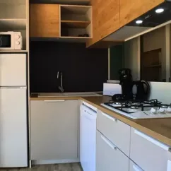 - Plaques de cuisson, réfrigérateur, micro-ondes, bouilloire, grille-pain, cafetière Senso, ustensiles de cuisine et vaisselle adaptée au nombre de personnes dans le logement, lave-vaisselle