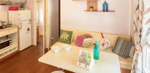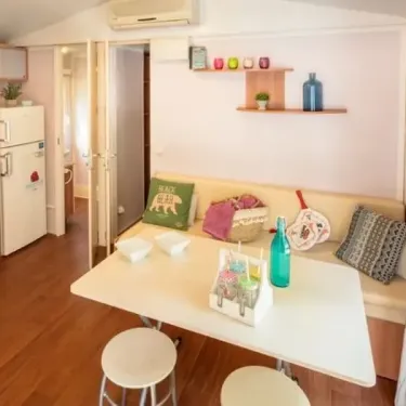 - Banquette-lit : 130x190cm (couchage impossible pour enfants de plus de 15 ans), table et chaises, climatisation