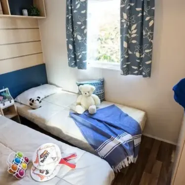 La dimension du couchage de la chambre "parents" peut être en 140 ou 160. Nous vous invitons à prendre contact avec le camping quelques jours avant votre arrivée pour connaitre celle de votre futur hébergement.