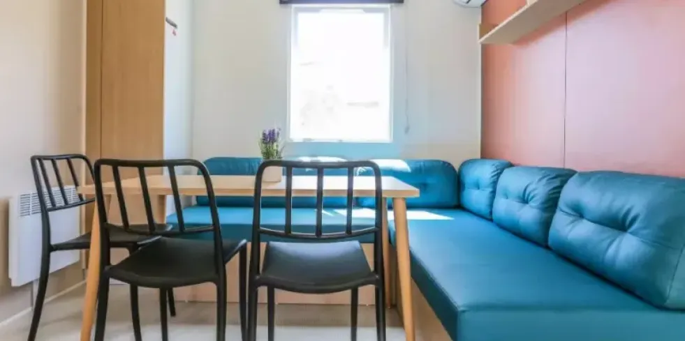 - Banquette, table, chaises, climatisation