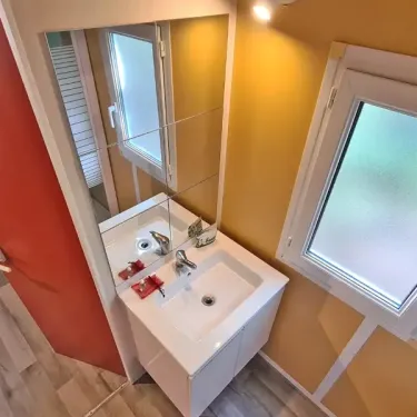 - Salle d’eau avec lavabo, douche, WC