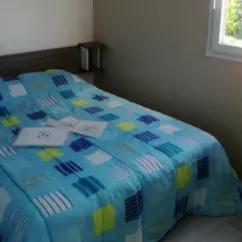 Surface de 27 m², 1 chambre avec 1 lit double (140x190), couettes, oreillers, 1 chambre avec 2 lits simples (90x190), couettes, oreillers, salle de bain avec douche, WC séparés, terrasse semi-couverte, salon de jardin...