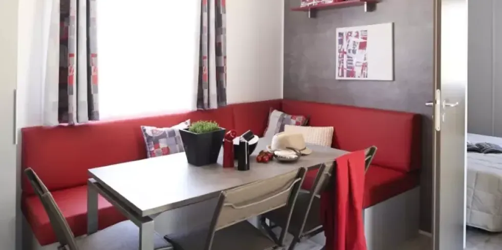 - Séjour avec table, chaises et une banquette convertible pour deux personnes (140x190)