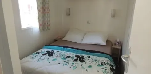 Surface de 30 m², 1 chambre avec 1 lit double (140x190), couverture, oreillers, 1 chambre avec 2 lits simples (70x190) et 1 lit superposé (70x190), couvertures, oreillers, salle de bain avec douche et WC, terrasse couverte, salon de jardin...