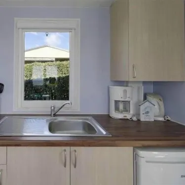 - Plaques de cuisson, évier, micro-ondes, cafetière électrique, frigo, vaisselles et ustensiles de cuisine inclus