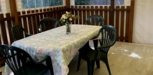 - Banquette, table, chaises, télévision