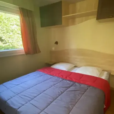 Surface de 26 m², 1 chambre avec lit double (140 ou 160x190), couverture, oreillers, 1 chambre avec 2 lits simples (80x190), couvertures, oreillers, Salle d'eau avec douche, WC séparés, terrasse couverte avec salon de jardin…