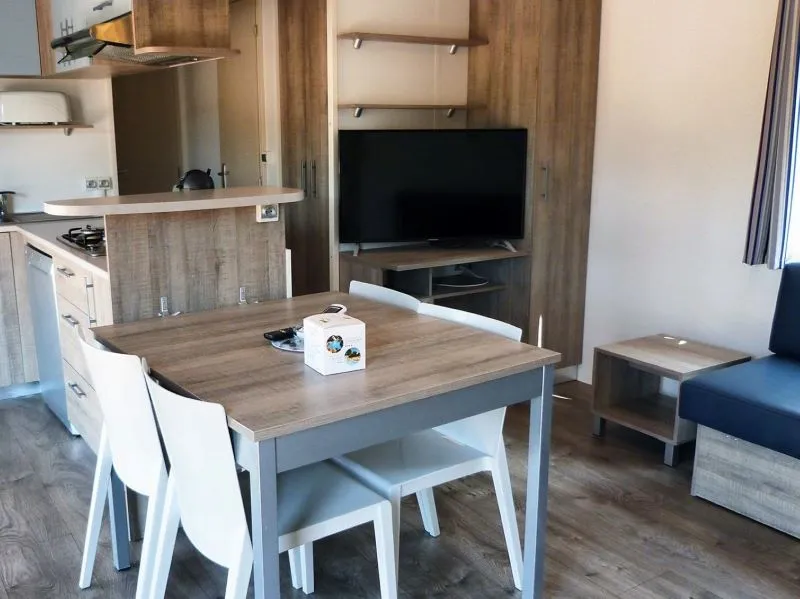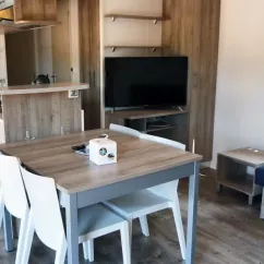 - Banquette réversible (130cm x 190cm), table, chaises, climatisation réversible, télévision (chaînes TNT françaises), chauffage