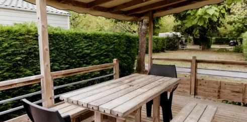 - Terrasse semi-couverte avec table de pique-nique et 2 chaises