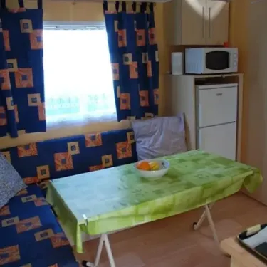 Surface de 22m², 1 chambre avec 1 lit double (140x190), 1 chambre avec 2 lits simples (70x190), cuisine équipée, télévision, salle de bain avec douche, WC séparés, terrasse couverte, salon de jardin...