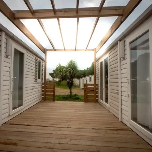 Cette location se compose de deux mobil homes de 2 chambres de 4 pers. de 29m² avec une terrasse commune de 20m².