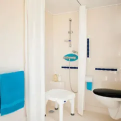 - Douche à l'italienne, lavabo et WC, siège amovible de série, barres de maintien , sèche cheveux, lave linge