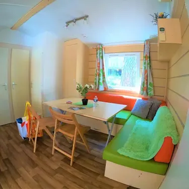 - Banquette, table, chaises, climatisation