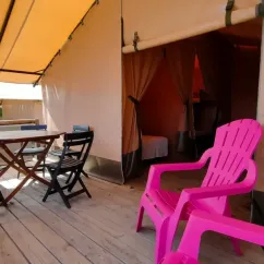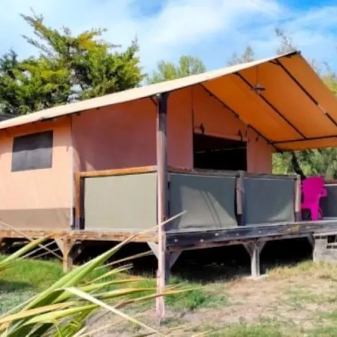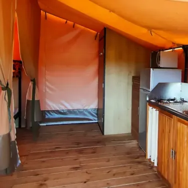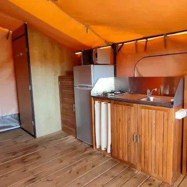 Hébergement toilé avec sanitaires (pas de salle d’eau).