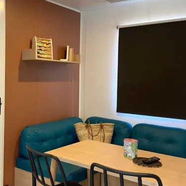 - Banquette convertible en lit 2 places au salon (130cm x 190cm, constitué avec les coussins), table, chaises, climatisation réversible, télévision (chaînes TNT françaises), chauffage