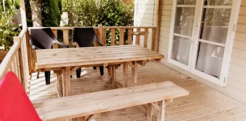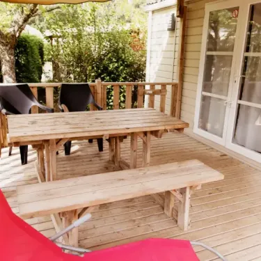 - Terrasse semi-couverte avec table de pique-nique et 2 chiliennes