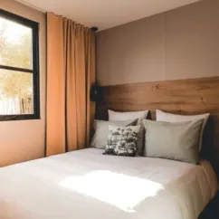 Le Mobil home Tribu est un hébergement conçu pour les grandes familles. Il est composé de 2 mobil homes 3 Chambres, 6 personnes avec une terrasse commune.