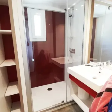 - Salle d’eau avec lavabo, douche, WC