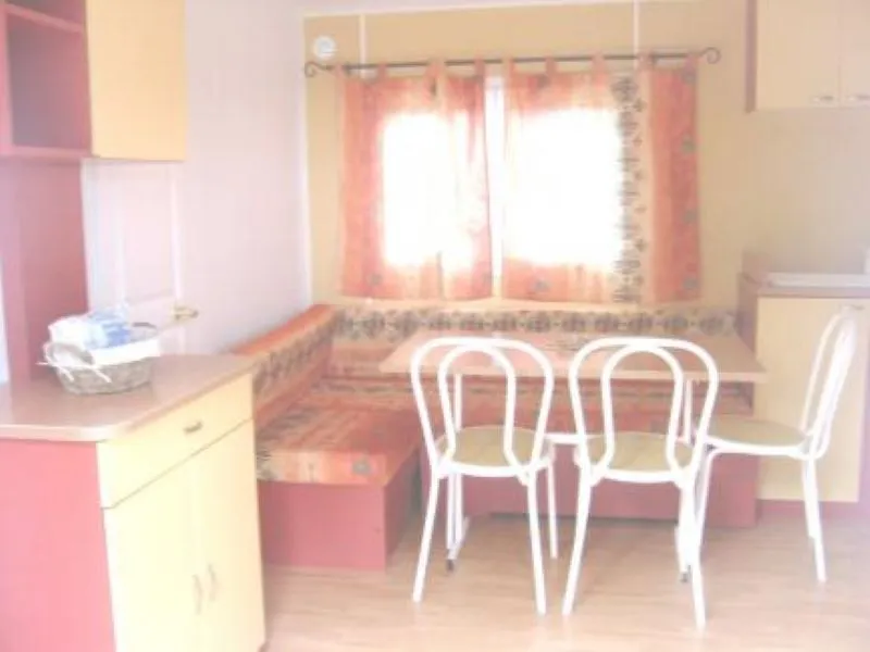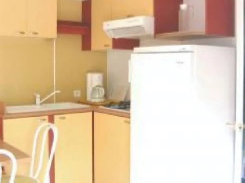 32 m2 de surface, 1 Chambre avec 1 Lit double, 2 Chambre avec 2 Lits simples, banquette d’angle convertible en Lit double, coin cuisine, salle de bain avec WC, terrasse...