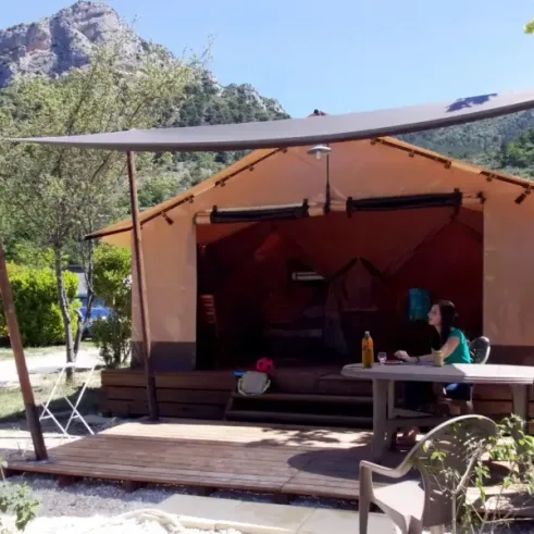 Location Safari Lodge 2 Chambres - 5 Personnes au camping Village Vacances et Camping La Fontaine d’Annibal, Drôme 26