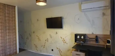 Surface de m², 2 chambres avec lit double (140cm), lit simple (90cm), lits superposés (90cm), couvertures, oreillers, salle de bain avec douche et WC...