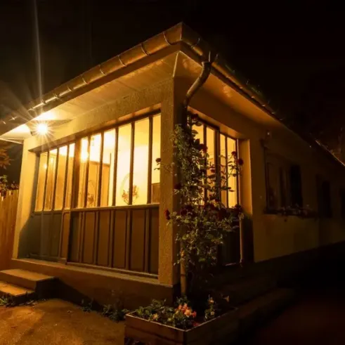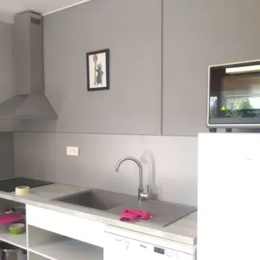 - Plaques de cuisson, four, micro-ondes, réfrigérateur, cafetière, vaisselle et ustensiles de cuisines inclus