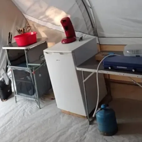 - Réchaud, réfrigérateur, cafetière, vaisselle et ustensiles de cuisines inclus