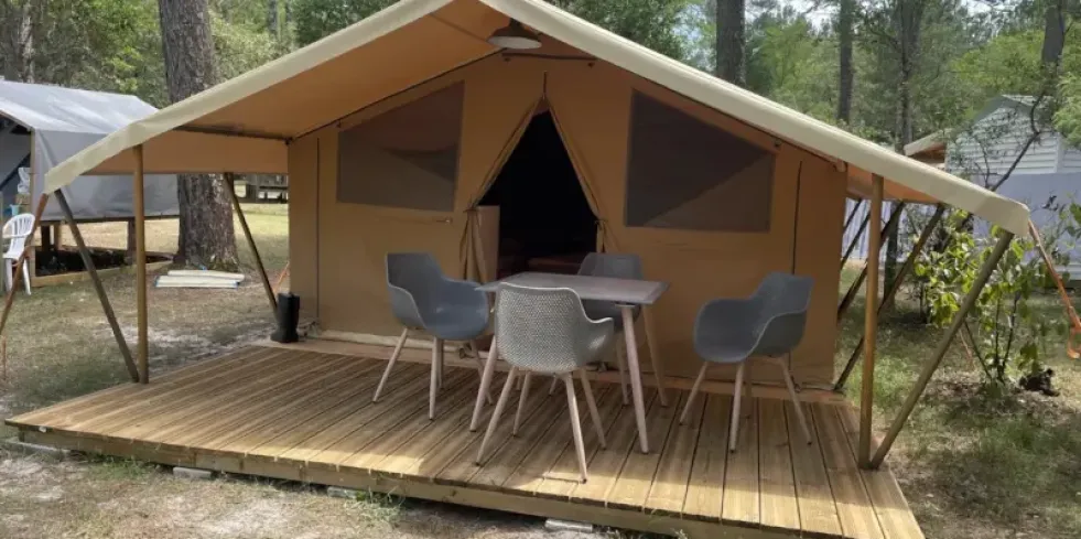 Location Tente Lodge 2 Chambres - 4 Personnes au camping Vert Bord'Eau, Gironde 33