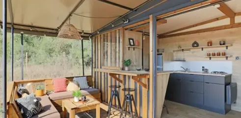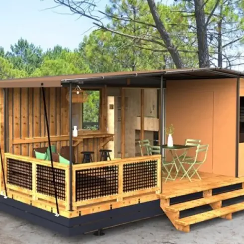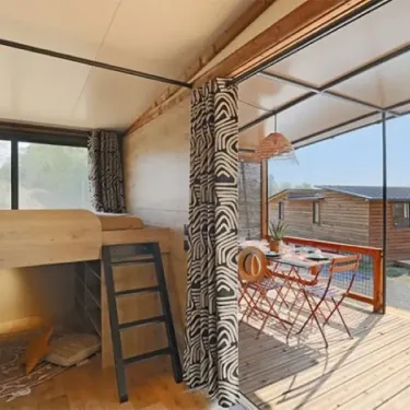 Location Tiny Lodge 2 Chambres - 5 Personnes au camping Bel Air Lac de Cazaux, Gironde 33