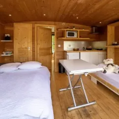 - Banquette convertible en lit double (140x190), 1 lit gigogne (90x190), chauffage électrique, climatisation