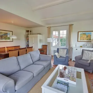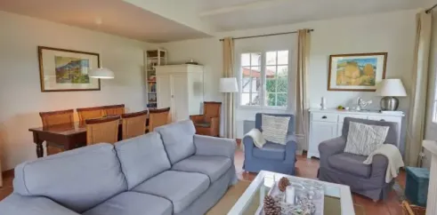 Surface de 110 m², 3 chambres avec deux lits simples, linge de lit, salle d'eau avec lavabo, cabine de douche ou baignoire et WC, terrasse couverte avec salon de jardin, deux chaises longues...