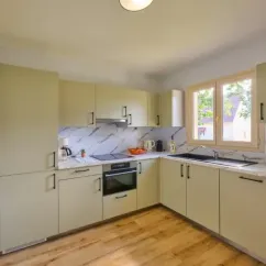 - Plaques cuisson, micro-ondes, cafetière, réfrigérateur/congélateur, lave-vaisselle, vaisselle et ustensiles de cuisines inclus