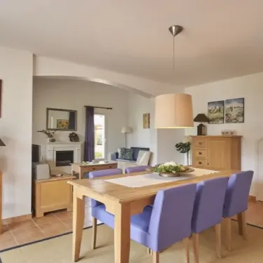 Surface de 115 m², 2 chambres avec deux lits simples, linge de lit, salle d'eau avec lavabo, cabine de douche ou baignoire et WC, terrasse couverte et salon de jardin, deux chaises longues...